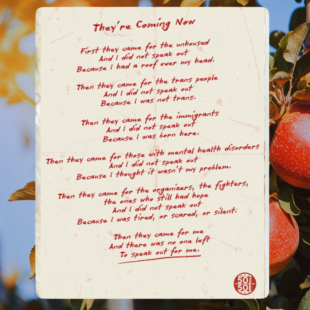 No, that oppression landed on kids just trying to live their lives, like my trans daughter. It landed on immigrants, whether they did it the “right way” or not. It is coming for disabled people, happy LGBTQ+ marriages, people who rely on home health care, or need additional employment supports. It came for anyone who was perceived as anything less than “America First,” whatever the fuck that’s supposed to mean.