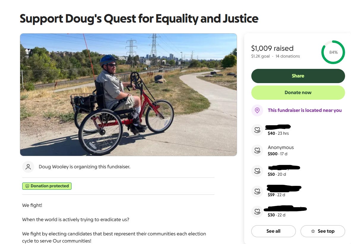 Well, meet my friend, Doug Wooley, who is trying to do just that. He has a dream that he is VERY close to making come true. Less than $200 to go on his GoFundMe to help him get to a training that would be challenging to do on his own, thanks to archaic federal disability rules and worsening economic supports here in Colorado.